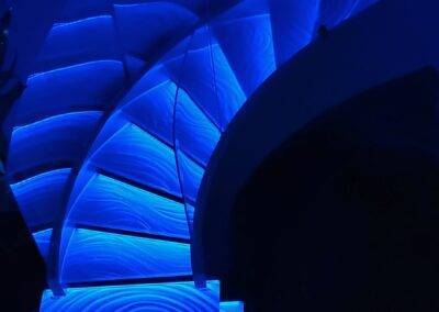 The textured glass allows our forms to take ANY shape you desire. By integrating our LEDs, we create an extraordinary light show in these custom stair tread designs.